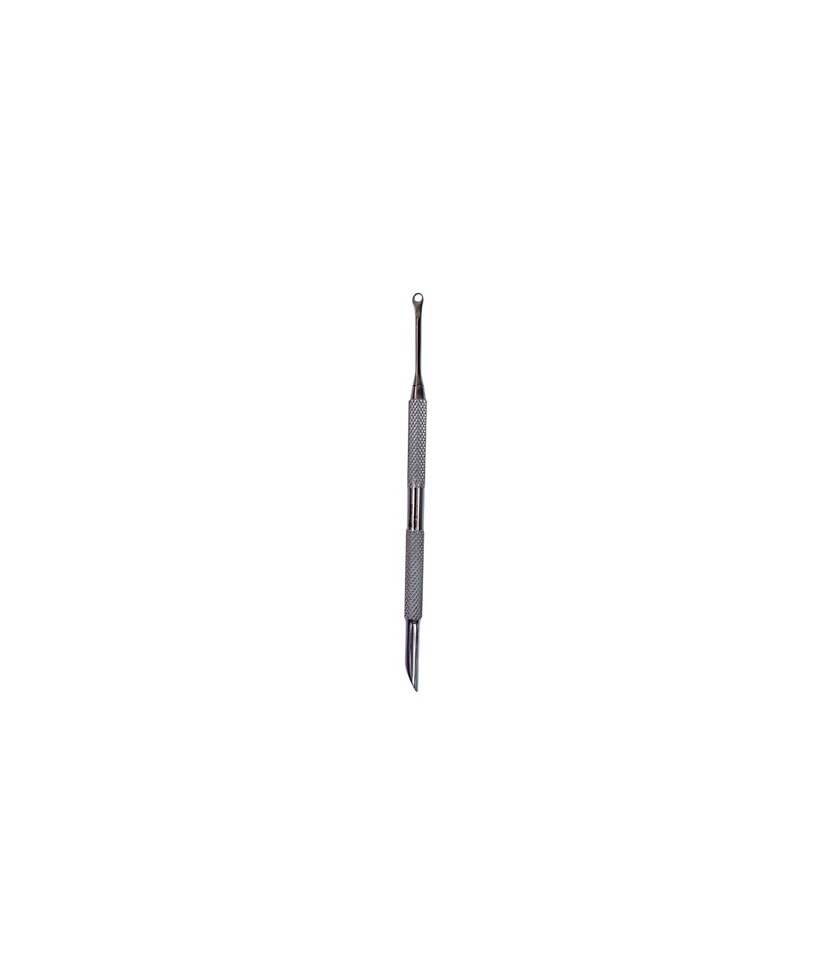 Lado arredondado, que se adapta à forma da unha permitindo elevar e empurrar a cutícula para sua posterior remoção. O lado com laço permite remover peles agarradas às unhas. Adequado para manicure russa e combinada com um design funcional, preciso e robusto. O palito de aço inoxidável é destinado ao uso profissional. Pode ser submetido a todos os tipos de desinfeção. Produção: Vietnam | Afiação manual.